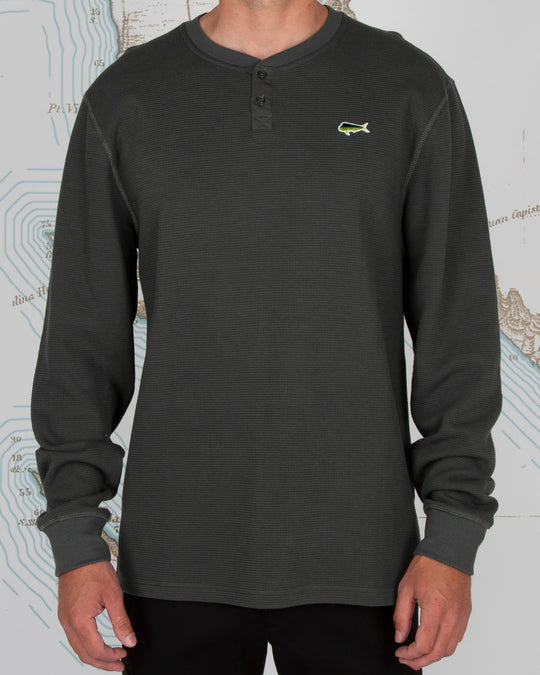 The Daybreak LS Thermal Tee in Pine is a men's long sleeve thermal pullover featuring soft-hand waffle knit. Layer it up with your favourite Salty Crew shell jacket, or wear it on it's own - the Daybreak Thermal Tee is made to keep you warm. Finished with Henley collar with button closure and chest fish patch detail. Made from 75% cotton and 25% polyester. Available in sizes S-XXL.