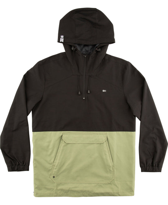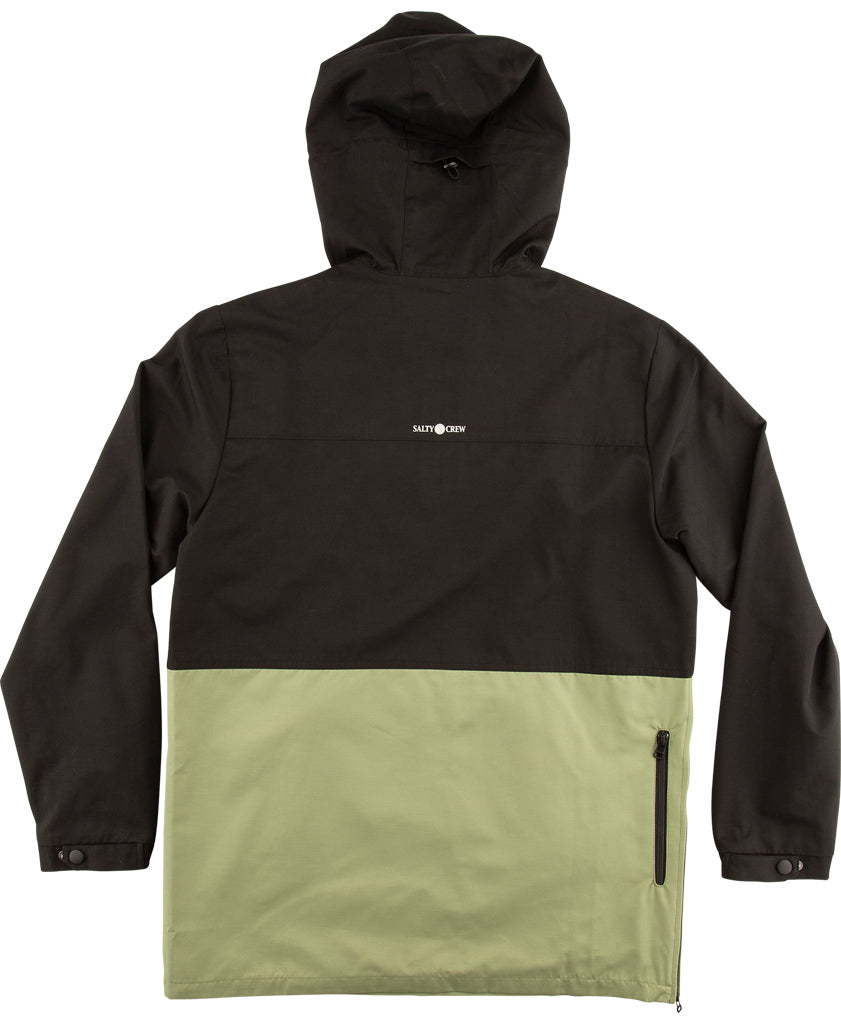 The Deckhand Jacket in Black is a water resistant hooded anorak jacket. Featuring colour blocked body, a dual front pocket and a front 1/2 zip. Made from nylon.