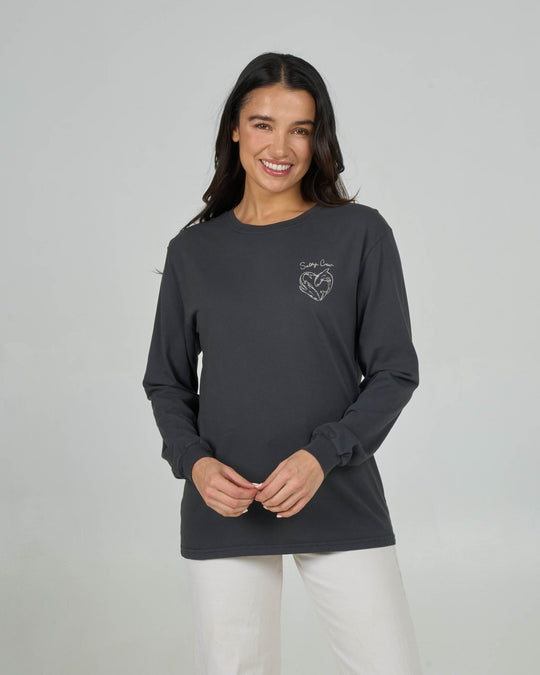 Heart Shark Long Sleeve Boyfriend Tee - Charcoal