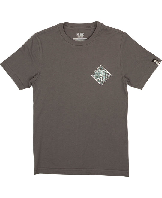 The Tippet Trio S/S Boys Tee in Cool Grey is a short sleeve premium t-shirt featuring screen print front and back. Made from 50% cotton/ 50% polyester 30 singles combed ringspun. Available in S, M, L, XL.
